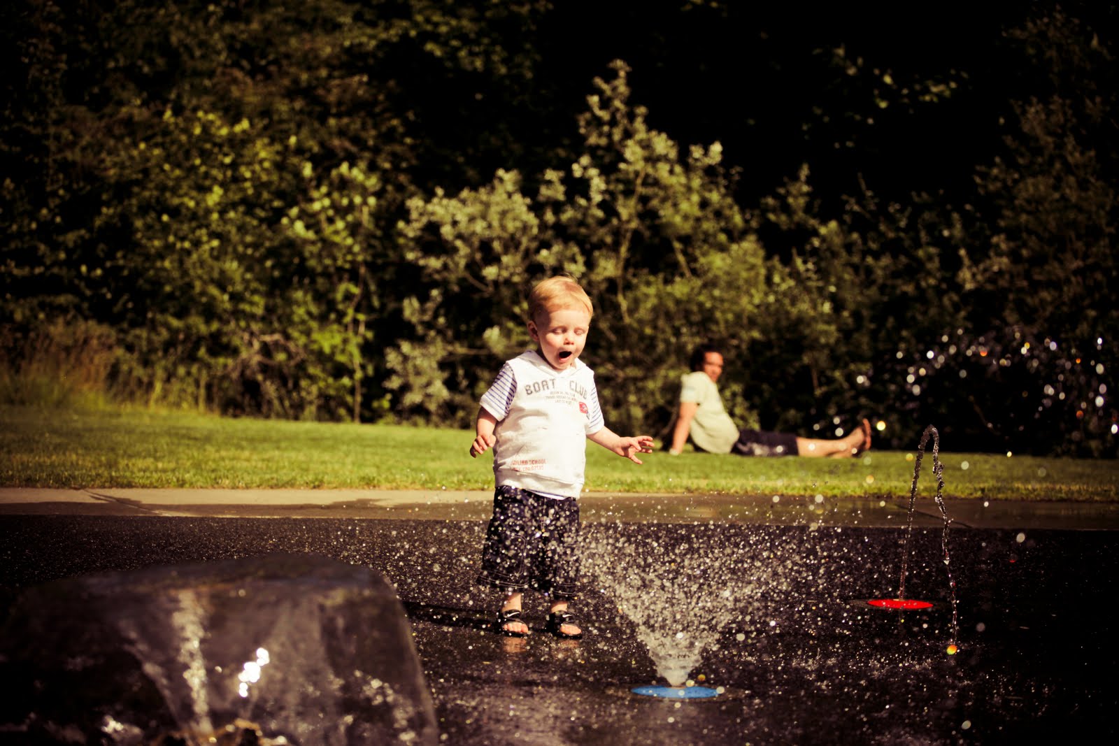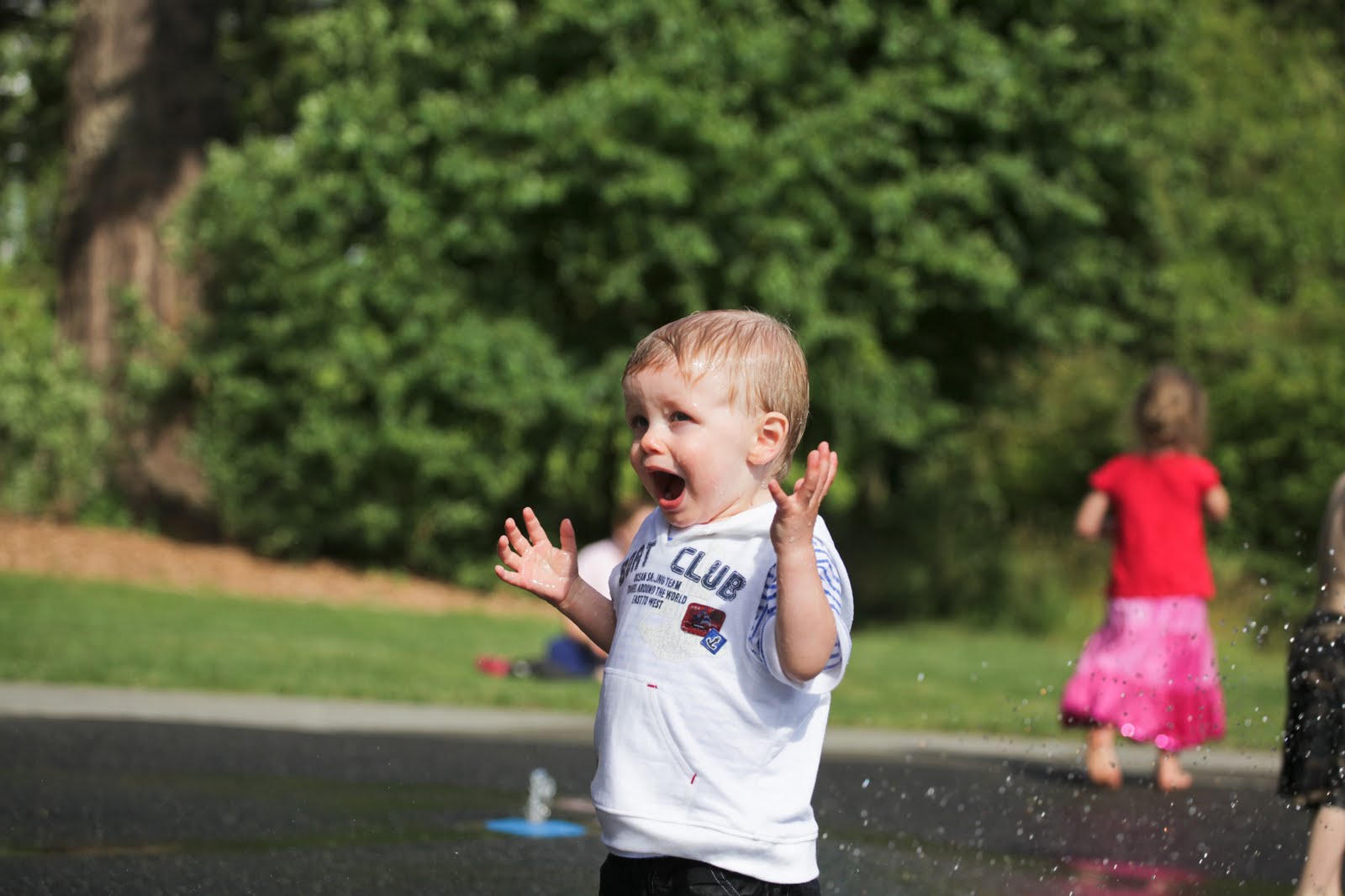 Fun in the sun (and the sprinklers) at Cornwall Park, Bellingham.